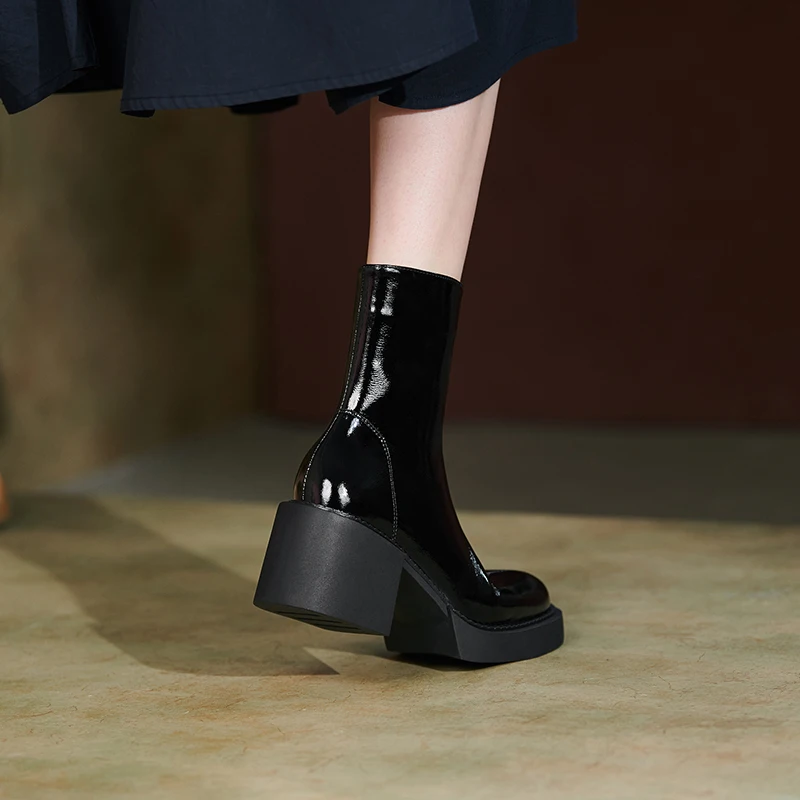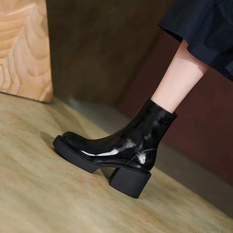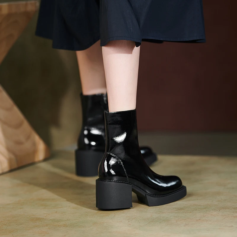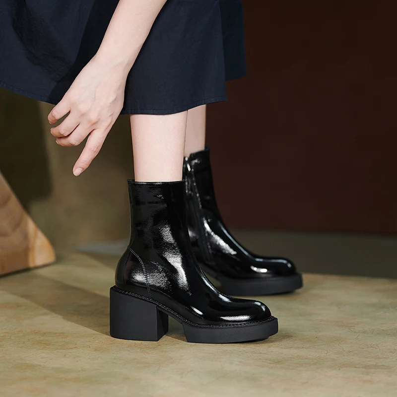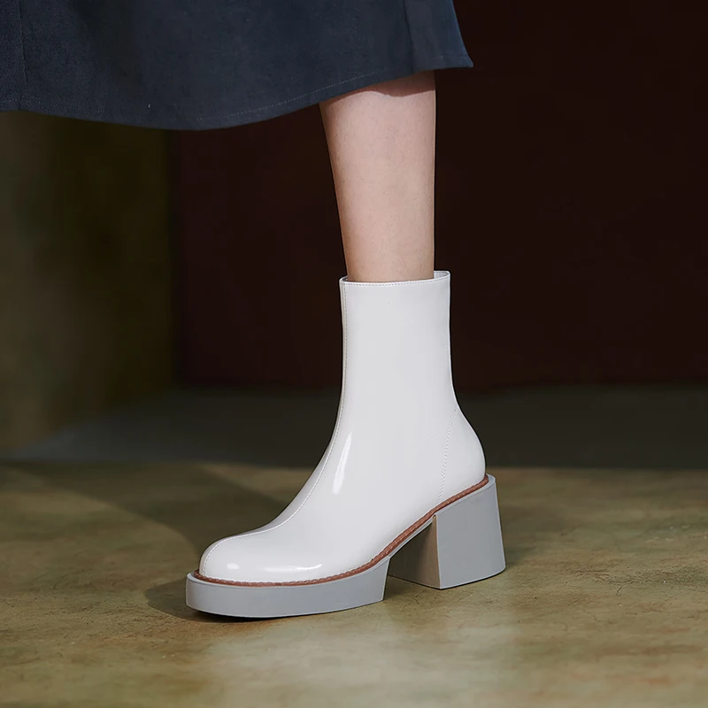 2021 New White Winter Women Shoes Genuine Leather Women Boots Platform Chunky Boots Women Solid Women Shoes High Heel Boots