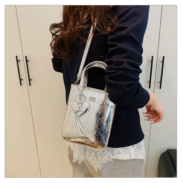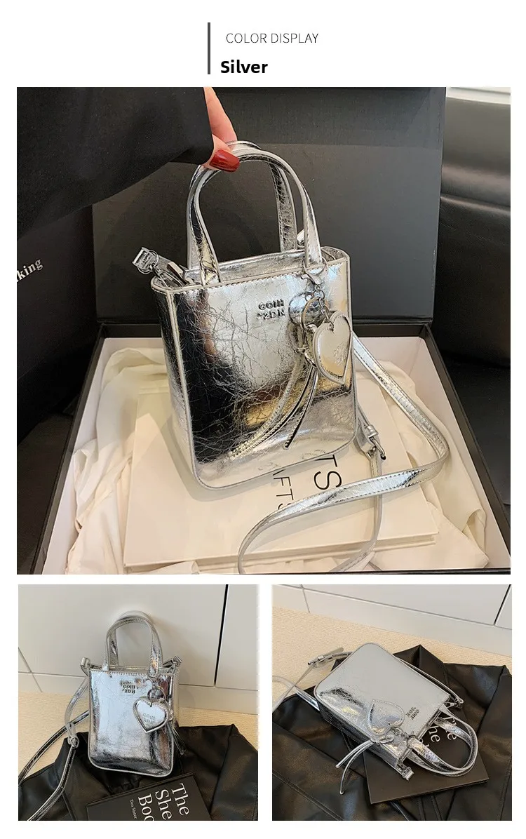 Korean Women Bag Silver Mini Small Square Bag Texture Vogue Versatile Shoulder Purses Crossbody Bag Lady Handbags