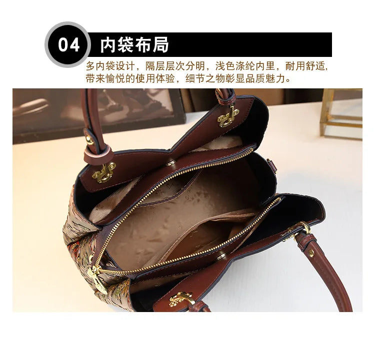 Light Luxury PU Leather Tote Bag Large Capacity Crossbody Women Bag Fashion Vintage Flower Pattern Purse and Handbag