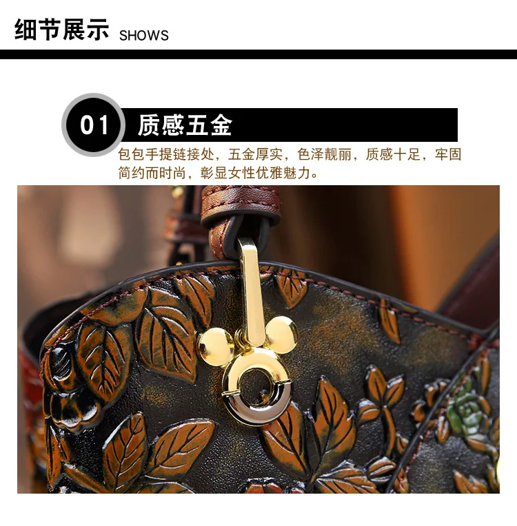 Light Luxury PU Leather Tote Bag Large Capacity Crossbody Women Bag Fashion Vintage Flower Pattern Purse and Handbag