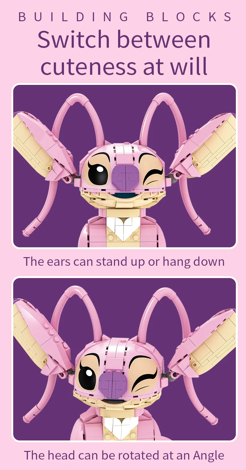 New Stitch Angel CP Building Blocks 2025 - Large Piece Cartoon Toys with Moving Ears Kids Assembly Gift for Boys Girls Birthday