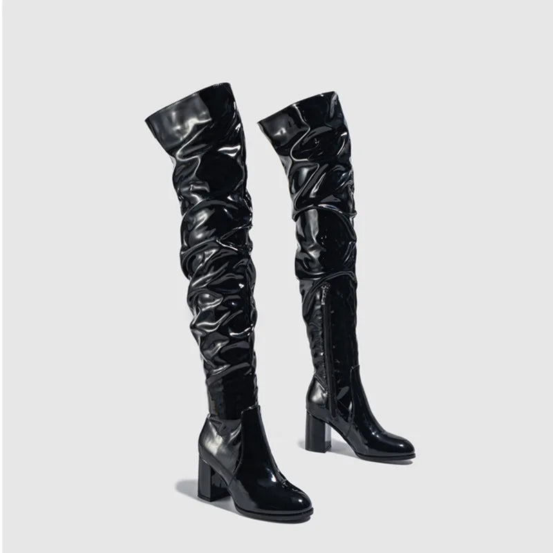 New Women's Long Boots Patent Leather Over The Knee Boots Sexy Womens Pumps Fashion Thick Heels Women Shoes Zlp Zapatos De Mujer