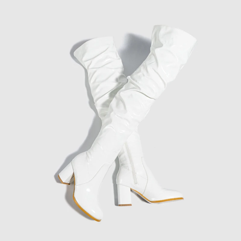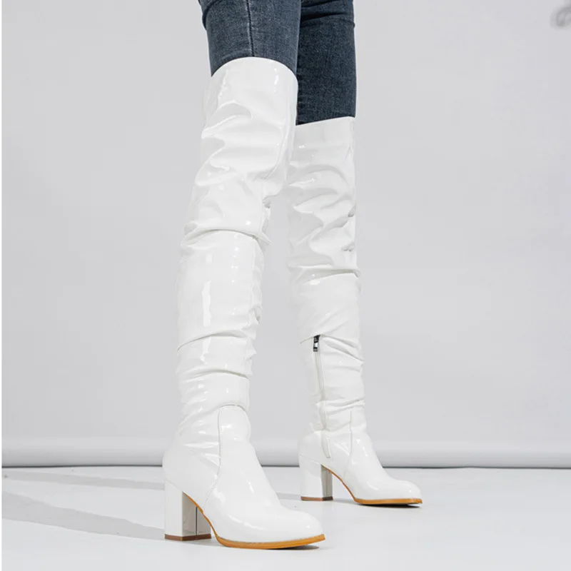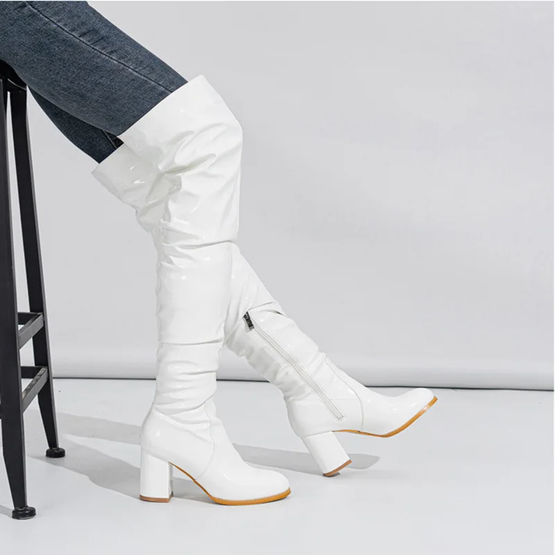 Autumn Winter White Patent Leather: Over The Knee Boots Women